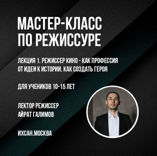 19 октября 2025 года Центр Марджани приглашает учащихся в возрасте от 10 до 15 лет на встречу с Айратом Галимовым. В этот воскресный день состоится увлекательный мастер-класс по режиссуре кино.