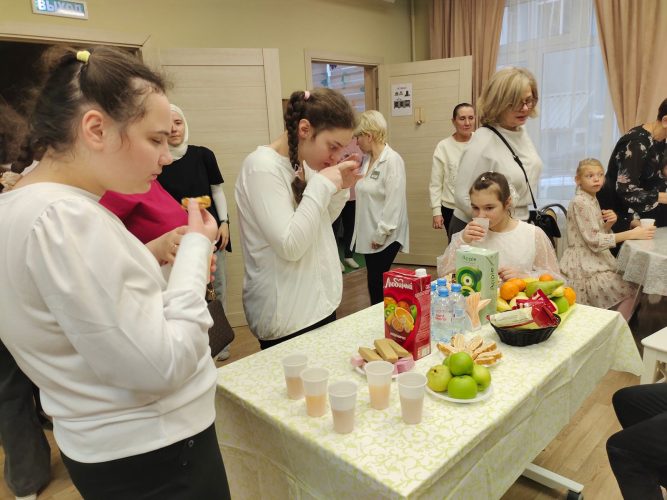 В этот раз, продолжая добрую традицию, Совет молодежи при Центре Марджани не просто посетил праздничный вернисаж «Глазами разных», а внес свою частичку добра в его организацию. Был организован сбор средств, закупка и доставка в центр сладких угощений, чтобы завершение торжественного дня стало по-настоящему теплым и радостным для всех ребят.