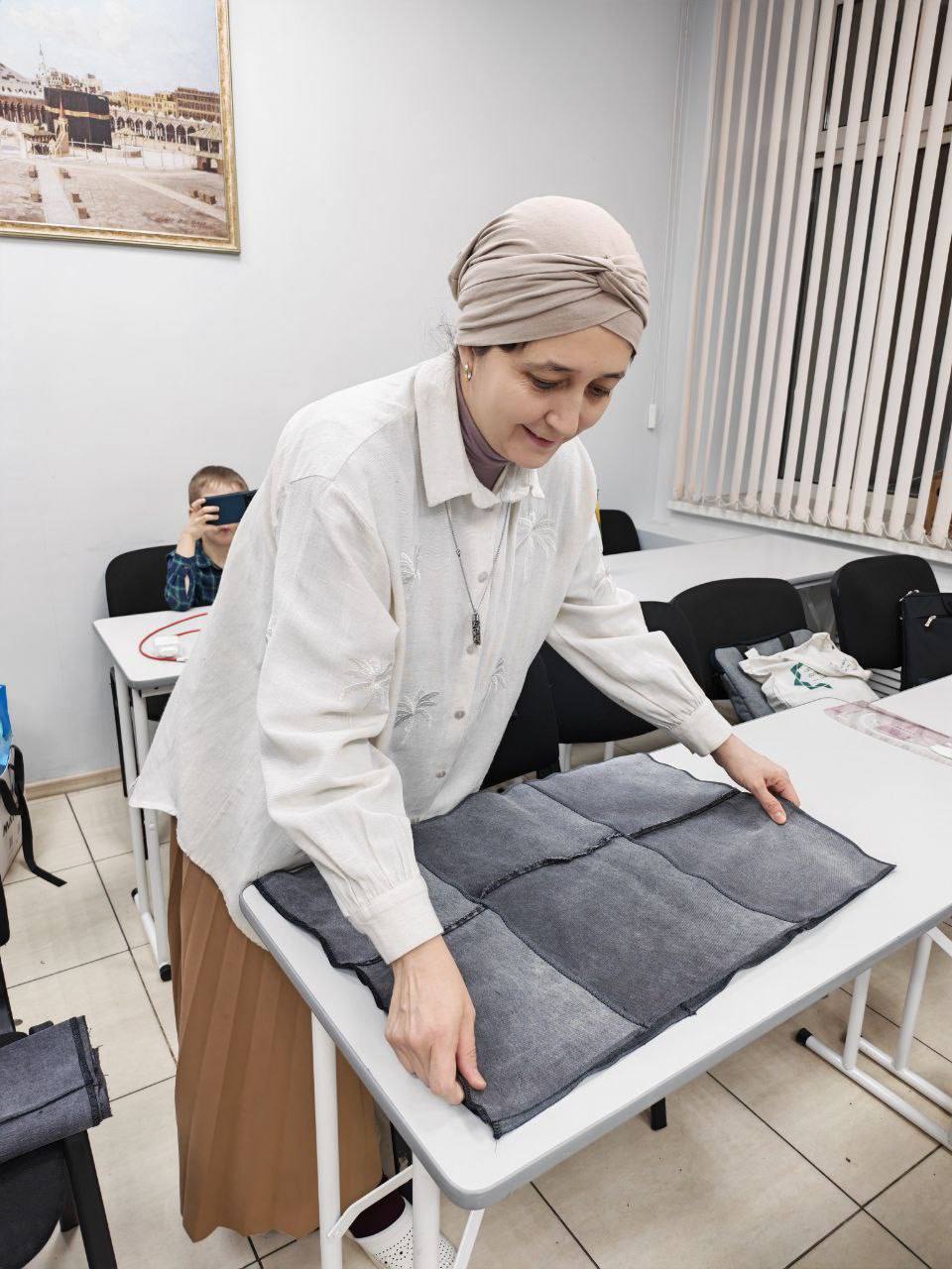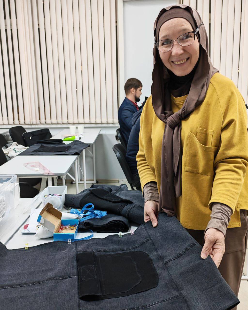 Работа кипела с обеда и до позднего вечера. За столами, уставленными заготовками прочной джинсовой ткани, швейными машинками, царила атмосфера сосредоточенности и тихого, но мощного энтузиазма. Лица участников, утомленные, но светящиеся изнутри, отражали непоколебимую веру в правое дело и искреннее желание помочь тем, кто сейчас находится на передовой.
