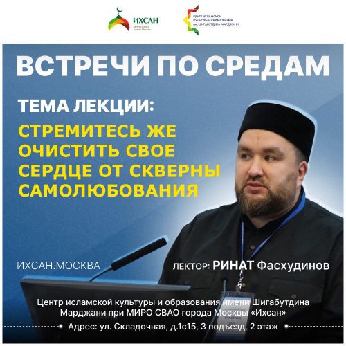 08 октября 2025 года, состоится очередная лекция Рината Фасхудинова. Тема встречи будет посвящена такому распространенному в наши дни духовному пороку, как самолюбованию (уджб), отравляющему душу и искажающему восприятие реальности. Он проявляется в преувеличенном представлении о собственных достоинствах, способностях и достижениях. Человек, подверженный уджбу, склонен видеть себя в исключительном свете, превозносить свои достоинства над другими и принижать чужие. Он становится глух к критике, заносчив и высокомерен. Пророк Мухаммад ﷺ, предупреждая о пагубных последствиях данного недуга, говорил: «Если бы вы не грешили, я бы опасался для вас того, что еще хуже этого, — самолюбования, самолюбования» [Передано от Анаса бин Малика; Баззар, Ибн Хиббан, Байхакы].