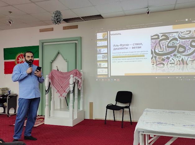 В продолжение вечера Имран эфенди, уроженец Палестины, провёл увлекательную лекцию на тему «Отличия палестинского диалекта арабского языка от литературного арабского», погрузив собравшихся в лингвистические тонкости. Гости узнали, как от классического фусха простираются ветви живых диалектов, в чем природа их рождения и заглянули в этимологию некоторых слов. А стихи «На этой Земле есть нечто, ради чего стоит жить», прочитанные Имраном на родном языке, оставили слушателей неравнодушными.