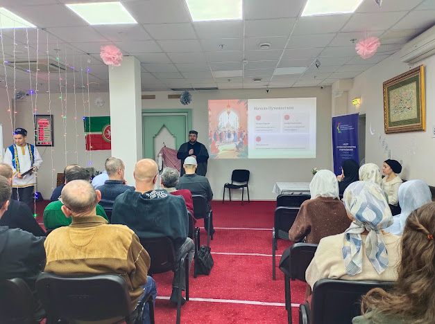 Мероприятие началось с возвышенной ноты – чтения Священного Корана в исполнении Ильяса хаджи Хайруллина, что задало особую, духовную атмосферу встречи. С приветственной речью обратился Ринат хазрат Фасхудинов, руководитель МИРО СВАО города Москвы «Ихсан». Именно в образовательном Центре Марджани в атмосфере уважения к традициям изучаются два ключевых языка исламской культуры и мысли: арабский – ключ к пониманию Священного Писания и многовековой мудрости и татарский – живая связь с историческим наследием и культурным кодом родного края.